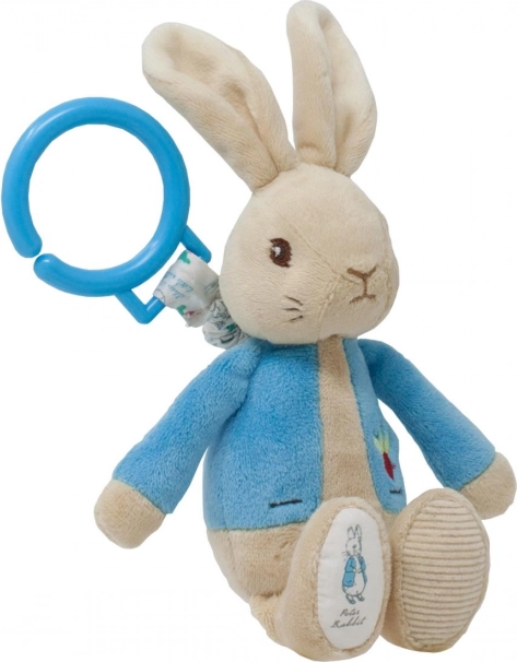 Il coniglietto a molla PETER RABBIT con l’iconica giacchina blu è progettato per le manine più piccole. Grazie all’anello in plastica, si fissa facilmente al passeggino, al seggiolino auto o sopra il lettino. Il bambino afferra il giocattolo e lo tira – una volta rilasciato, il coniglietto torna dolcemente indietro, favorendo lo sviluppo della motricità fine, la coordinazione occhio–mano e la percezione sensoriale.