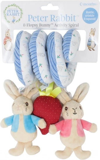 Offri ai tuoi bambini ore di divertimento con il sonaglio a spirale Flopsy Bunny. Questo giocattolo è progettato per essere attaccato a passeggini o culle, garantendo facile manipolazione e portabilità.