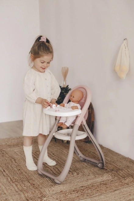 La sedia alta include un tavolino con un giocattolo per nutrire le bambole in modo divertente.