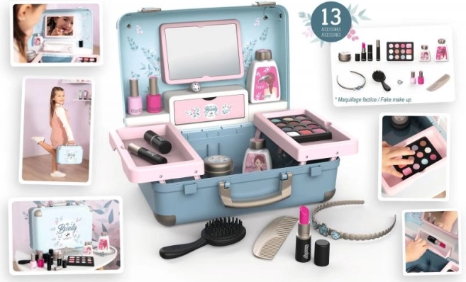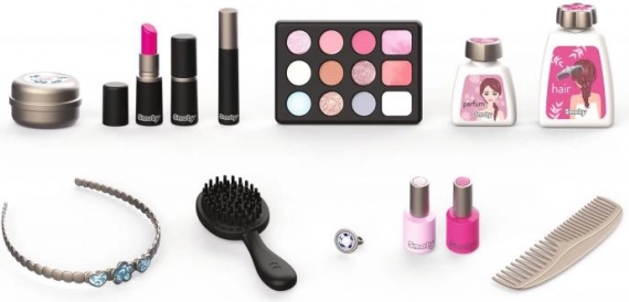 Scopri la magia del gioco al salone di bellezza con la valigetta cosmetica Beauty Vanity. Questa bellissima e funzionale valigetta contiene 13 imitazioni di prodotti cosmetici come rossetti, smalti, ombretti, mascara e altro ancora. Non mancano pettine, cerchietto e diverse boccette.