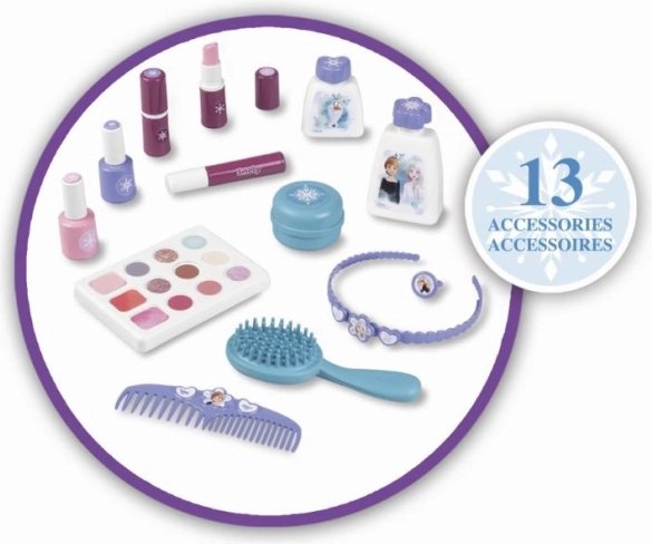 Questo set di bellezza della collezione Frozen è ideale per bambini che amano provare cose nuove e creare diversi look alla moda. Grazie alle dimensioni compatte e alla pratica maniglia, è possibile portare il set ovunque. Include: