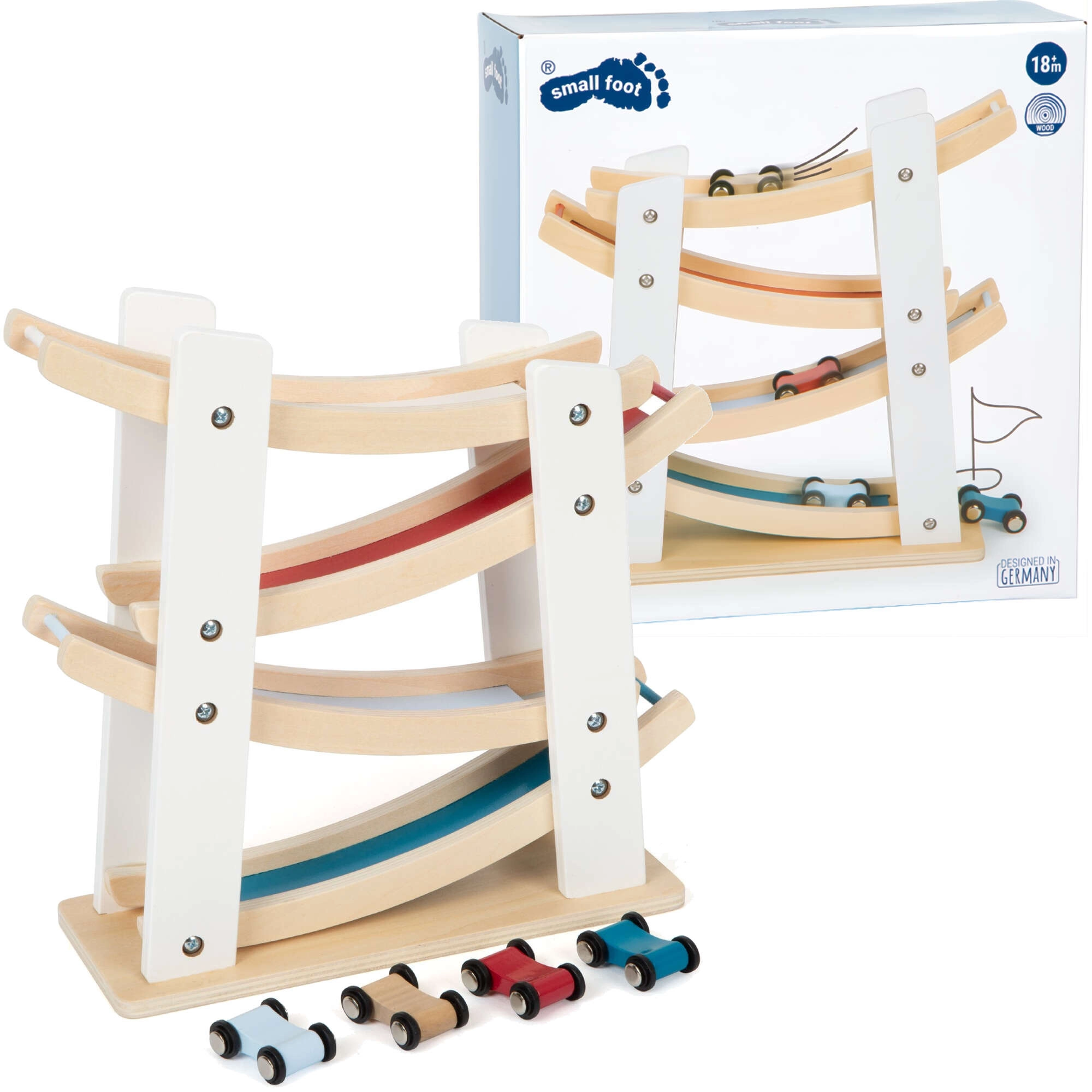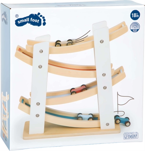 Scopri il divertimento per i più piccoli con la pista da corsa in legno con macchinine di Small Foot. La struttura robusta in legno naturale, quattro macchinine colorate e la discesa fluida sulle rampe a cascata sviluppano la motricità fine, la coordinazione occhio–mano e la comprensione di causa ed effetto. Giocattolo ideale dai 18 mesi per il gioco creativo quotidiano.