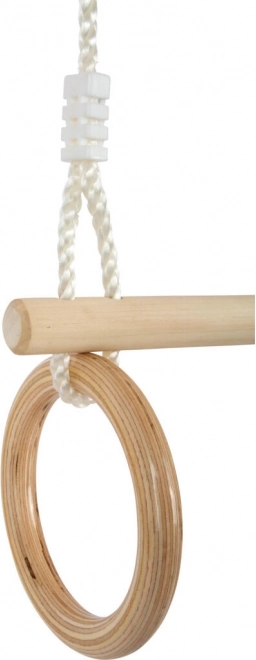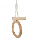 La sbarra e gli anelli sono realizzati in legno resistente che garantisce durata e sicurezza nel tempo.