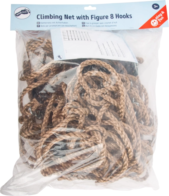 La rete da arrampicata è dotata di robuste fascette di plastica e occhielli metallici che garantiscono un fissaggio facile e sicuro.