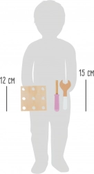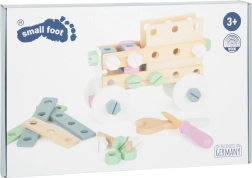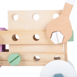 Listelli perforati, viti, dadi, ruote e utensili permettono ai bambini di creare veicoli e semplici costruzioni. Montaggio e smontaggio stimolano creatività e ragionamento logico.