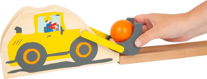 Questa pista per biglie in legno a tema cantiere offre tanto divertimento dinamico ai bambini dai 18 mesi in su. I pezzi si assemblano con facilità, così le biglie possono mettersi subito in marcia. Il design semplice e chiaro non sovraccarica i sensi e favorisce concentrazione e osservazione del movimento.