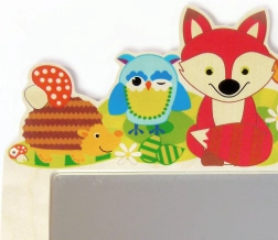 Questo appendiabiti in legno di alta qualità, con il giocoso motivo Animaletti del bosco, dona colore e ordine agli spazi dei bambini. Grazie ai cinque ganci robusti organizzi facilmente giacche, felpe, zainetti e accessori. Lo specchio integrato in plexiglass infrangibile è leggero, sicuro e ideale per l’uso quotidiano.