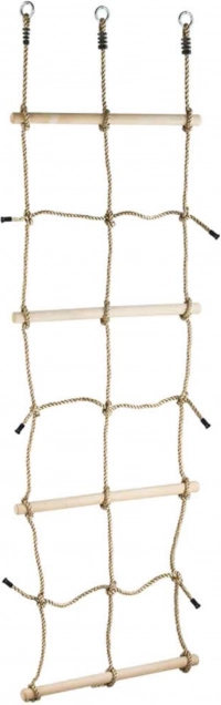 Rete da arrampicata per bambini è un accessorio ideale per avventure all'aperto. Grazie ai pioli in legno e ai tre anelli di sospensione offre grande divertimento e sicurezza su un moderno parco giochi per bambini o su una casa sull'albero.