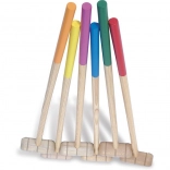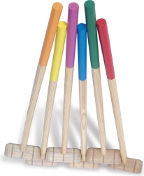 - Set completo per 6 giocatori: 6 mazze, 10 archetti, 6 palle, 2 picchetti terminali
