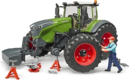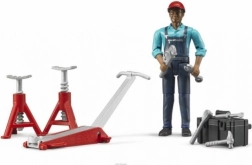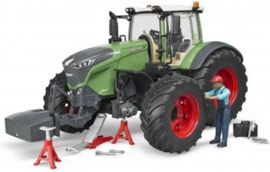 Il set include la figurina del meccanico con arti mobili e accessori da officina (martello, cacciavite, cric e altro), grazie ai quali è possibile simulare riparazioni e assistenza del trattore. Il modello è realizzato in resistente plastica ABS e policarbonato, garantendo lunga durata anche con uso intensivo.