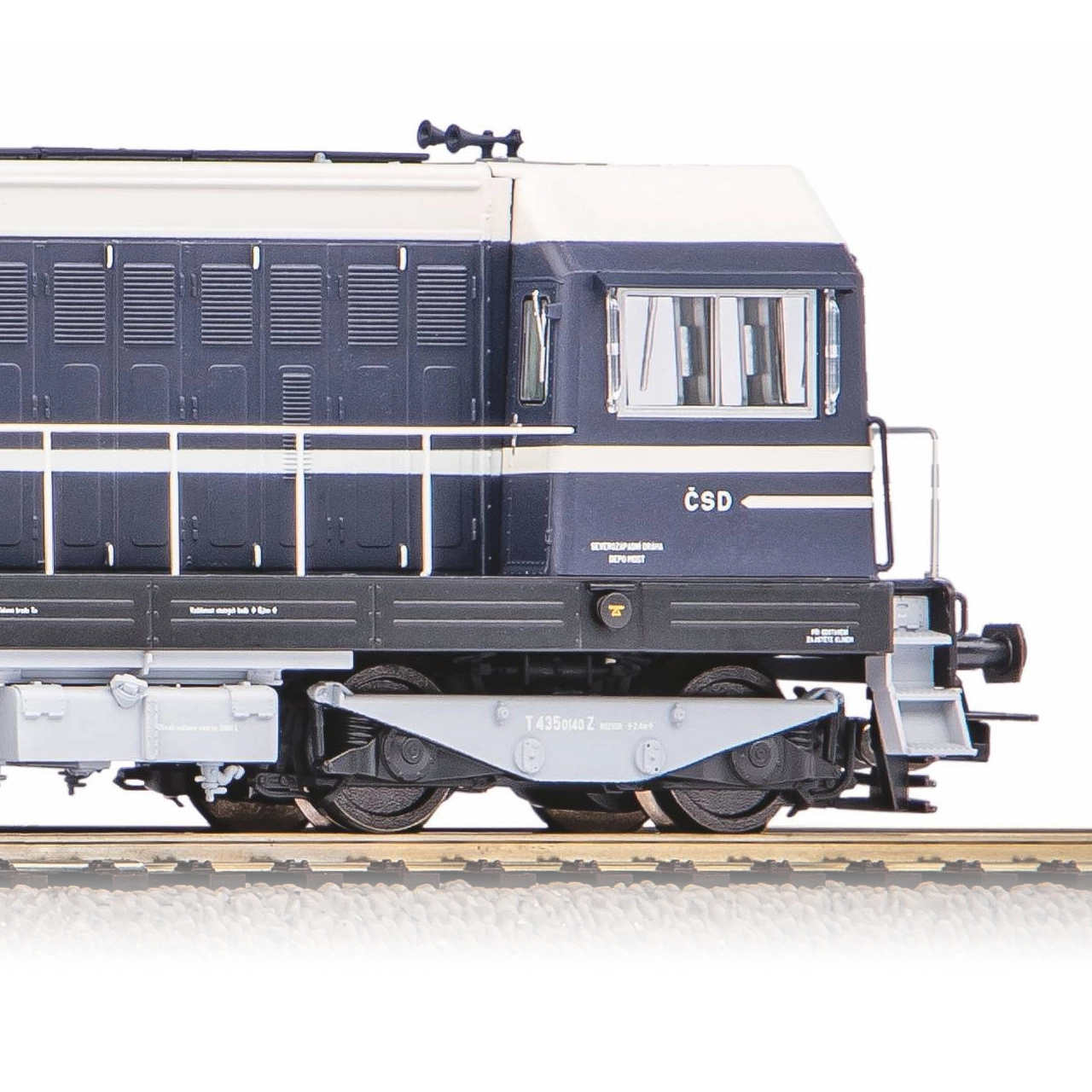 Questa replica precisa della locomotiva diesel-elettrica a quattro assi T 435 “Hektor” del periodo ČSD era IV soddisferà i modellisti e i collezionisti più esigenti. Si distingue per dettagli estremamente fedeli, inclusi carrelli differenziati per le serie più vecchie e più recenti, sottili stampaggi degli sportelli di servizio e una verniciatura di prima classe con stampe di qualità. Le finestre trasparenti permettono di ammirare l’interno cabina accuratamente riprodotto.