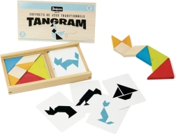 Scopri il classico rompicapo in una versione premium: il tangram Jeujura in scatola di legno offre 7 pezzi di legno colorati e 30 carte con modelli. Prodotto in Francia con legno massello di faggio e pino, vernici ecologiche a base d’acqua e stampa con inchiostri vegetali. La pratica confezione serigrafata è ideale sia per giocare a casa che in viaggio.