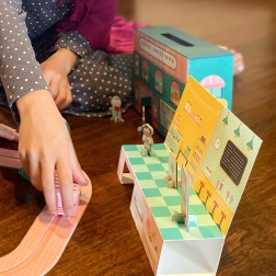 Realizzato con attenzione al pianeta: cartone, carta e legno con certificazione FSC, confezione completamente priva di plastica. Il set favorisce motricità fine, immaginazione e gioco di ruolo per bambini dai 3 anni.