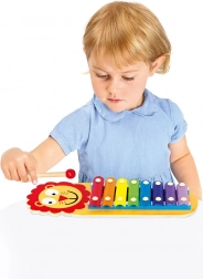 - Xilofono a forma di leoncino, 2 bacchette in legno (set da 3 pezzi)
