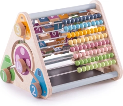 La combinazione di abaco, tessere girevoli con alfabeto e animali, numeri e lavagna con gessetti favorisce un apprendimento naturale e un divertimento duraturo.