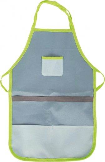 Il grembiule con spallacci regolabili e ampie tasche garantisce che i bambini abbiano sempre gli attrezzi riposti in modo sicuro e subito disponibili.