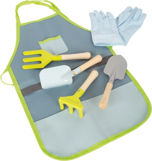 - Set completo: grembiule, guanti e 4 attrezzi (vanga, rastrello, paletta, forca)