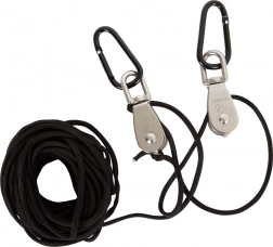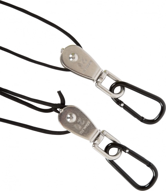 I pratici moschettoni permettono un aggancio rapido a una trave, a un gancio o a un ancoraggio provvisorio, senza attrezzi e in pochi istanti.