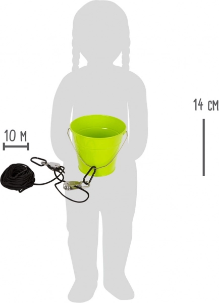 Questo set robusto combina un secchio in metallo resistente, una corda da 10 m e una coppia di carrucole con moschettoni per un facile fissaggio. I bambini imparano in modo divertente come funziona il vantaggio meccanico e sollevano piccoli oggetti in altezza con il minimo sforzo.
