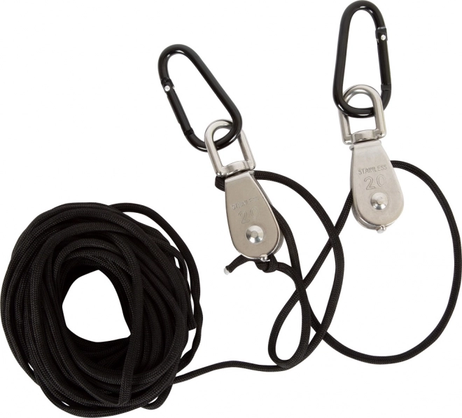 La corda lunga e resistente consente di sollevare e abbassare comodamente il carico da una distanza di sicurezza, ideale per casette e strutture da arrampicata.