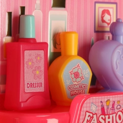 - Ricco set di accessori: specchietto, pettine, “phon” giocattolo, mollette, anellini, braccialetti, adesivi e boccettine che imitano smalti e profumi.