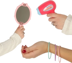 Il phon giocattolo in plastica e il grazioso specchietto stimolano la fantasia e donano al gioco un tocco autentico – in sicurezza e senza vera cosmetica.