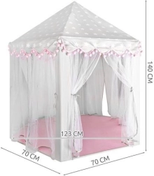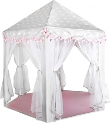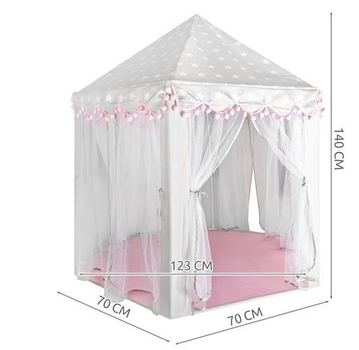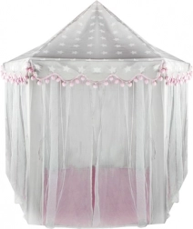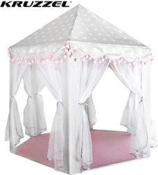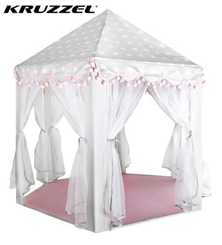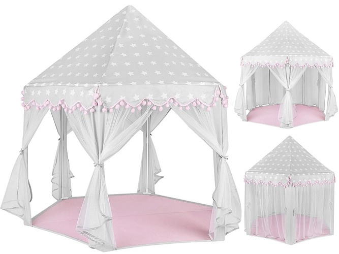 La magica tenda per bambini Kruzzel in combinazione grigio‑rosa con motivo di stelline trasforma ogni stanza in un rifugio da fiaba. Offre una pianta esagonale spaziosa, 6 ingressi con leggere tendine, montaggio facile senza attrezzi e pon‑pon decorativi per rendere il gioco ancora più incantato.