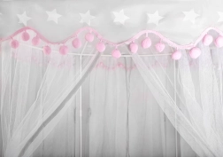 Tenda per bambini grigio‑rosa Kruzzel con tendine e pon‑pon