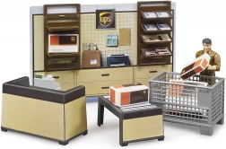 La base logistica del mondo Bruder si espande ora con un set unico che include il negozio UPS. In questo negozio i clienti possono: