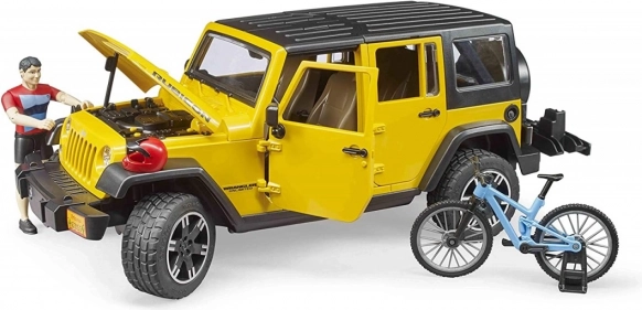 Questo set realistico è ideale per i bambini che amano le avventure all’aperto. Il Jeep Wrangler Rubicon di BRUDER riproduce fedelmente il vero fuoristrada, con porte e cofano completamente funzionali e tetto removibile. Grazie all’asse anteriore sterzante e al volante allungato, il controllo è semplice e divertente.