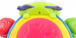 Il giocattolo è dotato di effetti sonori e luminosi. Suoni e melodie sviluppano la sensibilità musicale e un udito perfetto. Questo giocattolo è dotato di un sensore integrato, quindi quando incontra un ostacolo cambia direzione. La parte superiore riproduce suoni e melodie quando viene premuta. Il pulsante con punto interrogativo avvia un quiz in cui il giocattolo pone domande su colori o nomi di animali.