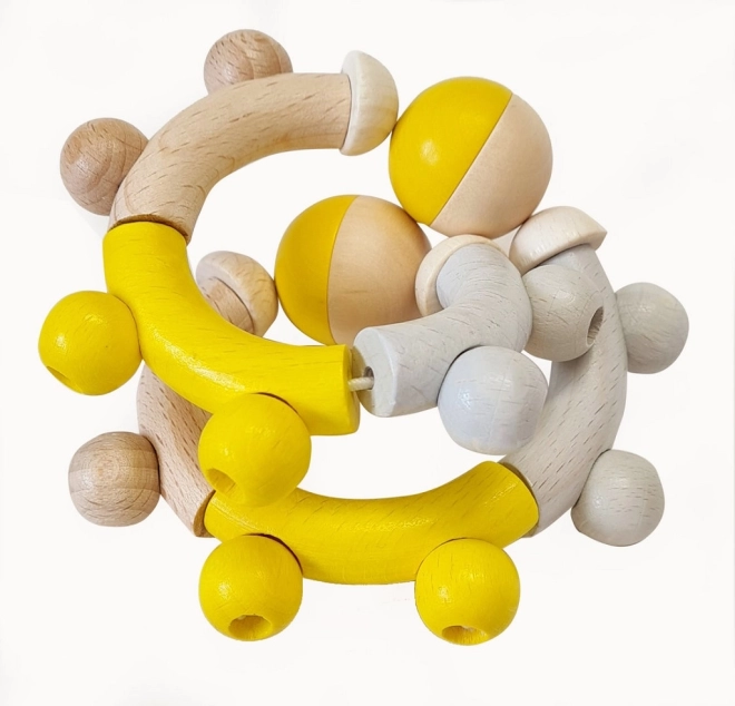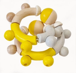 Sonaglio in legno Hess di colore giallo ideale per lo sviluppo delle abilità motorie del tuo bambino. Realizzato in legno di alta qualità ecologicamente lavorato, offre possibilità creative grazie a otto parti su un cordoncino elastico.