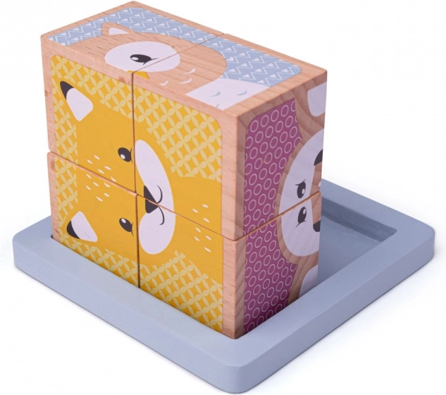 Questi blocchi di legno di Bigjigs Baby permettono di creare sei diversi motivi di animali del bosco.