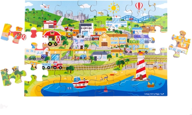 Questo splendido puzzle da pavimento a tema cittadino è ideale per i bambini dai 2 anni in su. Contiene 48 pezzi con illustrazioni vivaci di auto, edifici e scene naturali. Realizzato con materiali di alta qualità, soddisfa tutti gli standard di sicurezza europei.