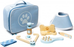 La valigetta veterinaria completa consente ai bambini di prendersi cura di peluche e figurine di animali domestici come un vero dottore. Nel set non mancano strumenti come stetoscopio, termometro, otoscopio, siringa, benda, spazzola, collare protettivo e altri accessori. Il tutto è riposto in una resistente borsa in tessuto con impronta di zampa, ideale per il trasporto e la conservazione.
