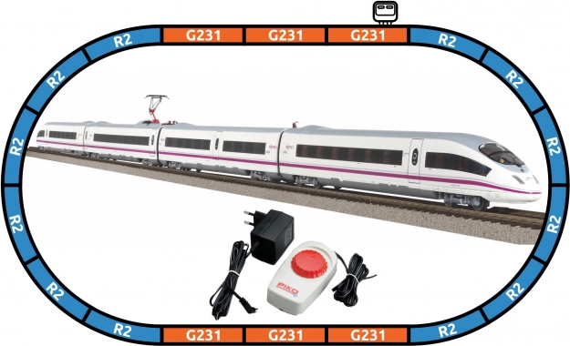 - Un ovale ferroviario composto da binari arcuati R2 e binari diritti G231 di alta qualità con base che garantisce una maggiore resistenza.