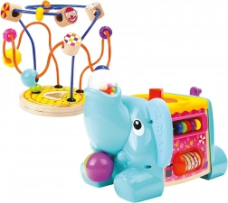 Il giocattolo incoraggia i bambini a esplorare e imparare attraverso il gioco, dal riconoscimento di colori e forme alla risoluzione di semplici compiti. La resistente combinazione di legno, metallo e plastica assicura stabilità e lunga durata, mentre i bordi arrotondati e la lavorazione di qualità garantiscono sicurezza nel gioco quotidiano.