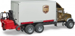 Bruder camion Mack UPS offre molte funzionalità che simulano un vero camion. Grazie alle porte apribili della cabina e del vano di carico, è possibile manovrare facilmente all'interno del modello. Include un carrello elevatore integrato con forche regolabili per diversi tipi di carichi.