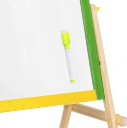 Lavagna doppia in legno per bambini con lato nero e lato bianco (cancellabile a secco) che favorisce creatività, apprendimento e motricità fine. La cornice colorata è in legno levigato, la struttura stabile è completata da un comodo ripiano per gli accessori. Nella confezione trovi pennarello, spugnetta e gessetti – pronta per l’uso immediato.