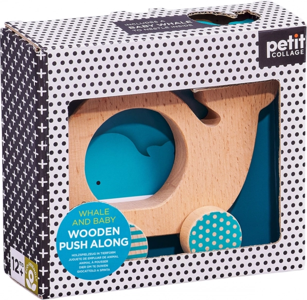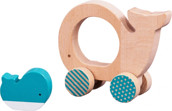Adorabile giocattolo in legno su ruote a forma di balena con cucciolo rimovibile: stimola la motricità fine e la fantasia dei bambini dai 12 mesi. Realizzato in 100% legno di faggio FSC, verniciato con colori atossici a base d’acqua e confezionato in pack eco in cartone riciclato. Senza BPA e piombo, conforme a tutte le norme di sicurezza.