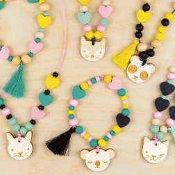 Questo set creativo farà felici tutti i piccoli designer di gioielli. Grazie alla ricca dotazione, i bambini possono combinare facilmente perline in legno, cuoricini, nappe e ciondoli con animaletti per creare accessori unici secondo la loro fantasia. È incluso anche un manuale chiaro, così la creazione è semplice e divertente.