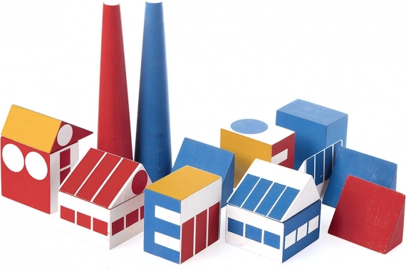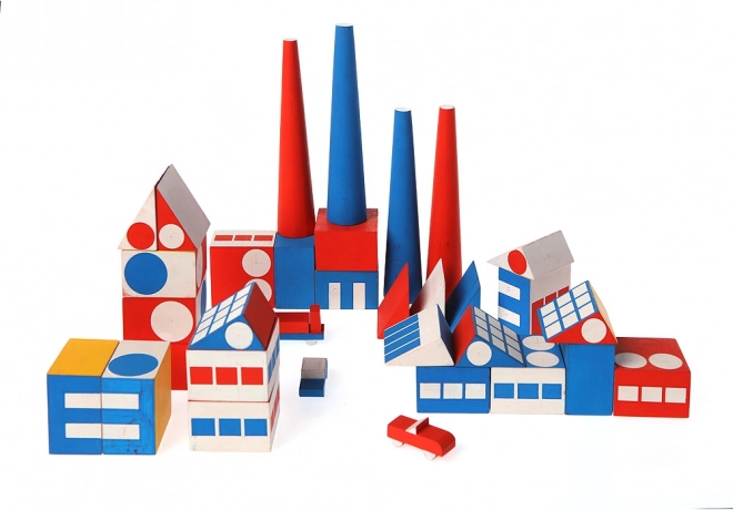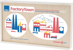 Il set si basa sul concetto originale “Factory Town” del 1921. Colori brillanti e forme pulite stimolano l’immaginazione dei bambini e sostengono il senso estetico.