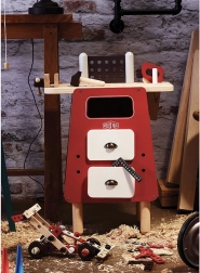 Vilac Il mio banco da lavoro è progettato affinché i bambini possano sperimentare in sicurezza e sviluppare le loro abilità meccaniche. Grazie al velcro possono “tagliare” il legno, piantare chiodini in legno con il martello e, con l’aiuto di cacciavite e chiave, montare e smontare vari pezzi. Questo giocattolo incoraggia immaginazione, pazienza e inventiva.