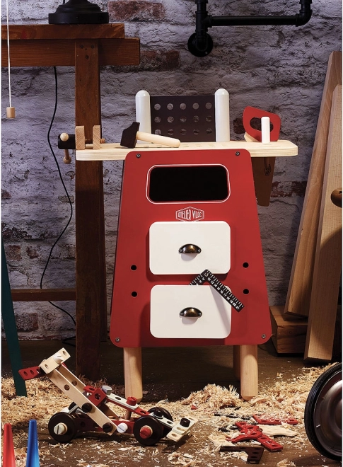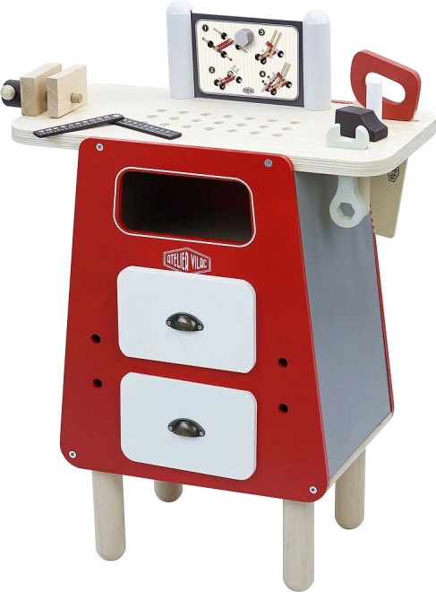 Questo banco da lavoro a doppia faccia con attrezzi, creato dall’Atelier Vilac, include fino a 76 pezzi di accessori e offre la possibilità di assemblare 4 costruzioni modulari. Questa collezione è ideale per i bambini creativi che amano creare e i progetti fai-da-te.