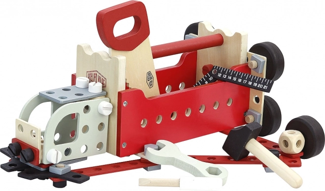Stai cercando un giocattolo che sviluppi le abilità motorie e il pensiero creativo dei tuoi figli? La valigia a doppia faccia con attrezzi Vilac è la scelta giusta! Questo set contiene fino a 96 pezzi che consentono la costruzione di strutture modulari come camion, gru o persino robot. Design Atelier Vilac garantisce una lavorazione di qualità e un'attraente estetica vintage. I bambini potranno provare il ruolo di piccoli artigiani e illuminare il loro mondo dei giocattoli.