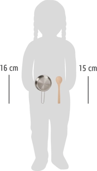 La pentola con coperchio rimovibile aiuta a scenari di gioco realistici e sviluppa l'immaginazione dei bambini. Il cucchiaio di legno insieme agli strumenti metallici come spatola e frusta, offrono un'ampia gamma di opportunità di gioco. Il guanto da forno in tessuto e il sottopentola aggiungono un tocco autentico e contribuiscono alla sicurezza durante il gioco.