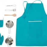 Questo set da cucina unico è progettato per far vivere ai tuoi bambini il fascino di cucinare in modo sicuro e realistico. Ogni componente di questo set è realizzato pensando alle mani dei bambini, garantendo facilità di manovra e sicurezza durante il gioco. Il grembiule per bambini con una grande tasca sul petto è pratico per riporre gli utensili da cucina e protegge il piccolo cuoco dalla sporcizia.
