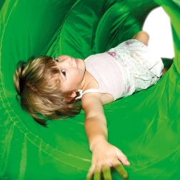 Il tunnel in tessuto resistente si piega in un attimo e, grazie al peso ridotto, si sposta facilmente dalla cameretta al giardino.