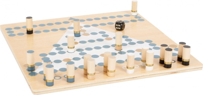 Scopri il gioco in legno bifacciale small foot Gold Edition, che unisce le classiche strategie di Halma e Barricate (Malefiz) in un’elegante realizzazione con dettagli dorati, blu fumé, nero, bianco e legno naturale. La plancia in due parti unita magneticamente garantisce stabilità e un facile riponimento nel box resistente. Una scelta perfetta per divertimento in famiglia, sviluppo del pensiero strategico e della concentrazione.