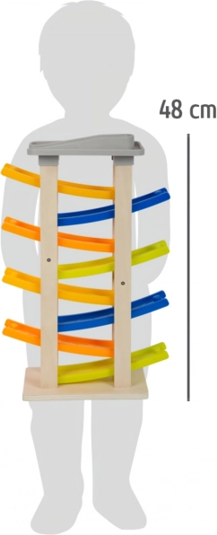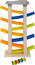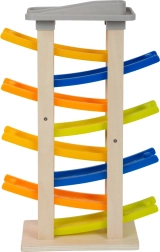 La pista è realizzata in legno naturale e plastica robusta, garantendo lunga durata durante il gioco. Il design multicolore della pista è non solo bello ma anche ideale per il sviluppo delle abilità motorie e della coordinazione mano-occhio.